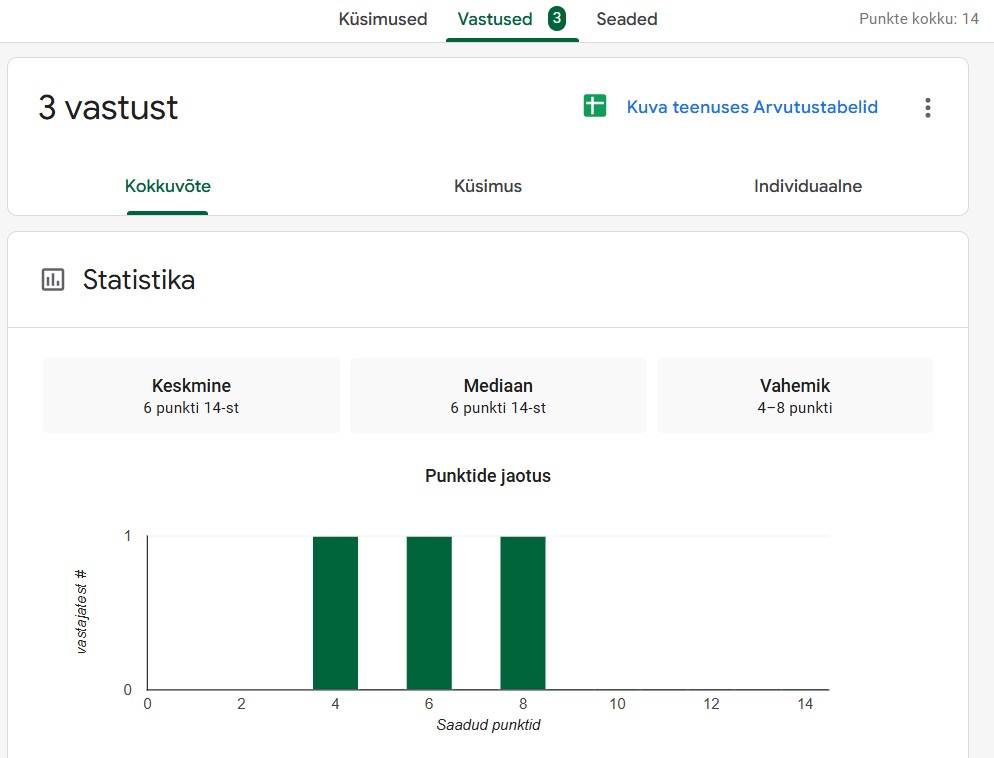 Google Forms'i testid võimaldavad kiiret ja mugavat tagasiside küsimist ja analüüdimist.